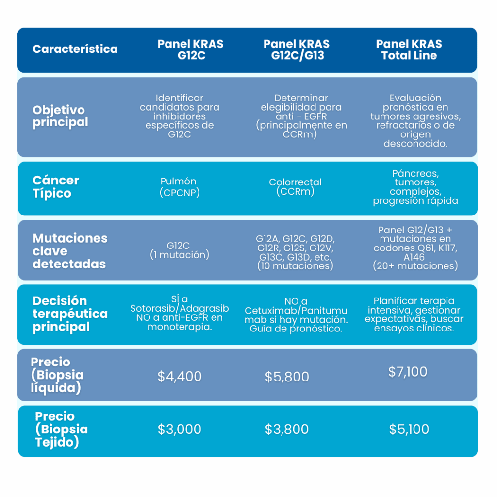 Nota: Todos los precios son más IVA. La biopsia líquida, aunque tiene un costo nominal mayor, ofrece un valor incalculable en términos de rapidez, seguridad para el paciente y la capacidad de obtener un diagnóstico cuando la biopsia de tejido no es una opción.