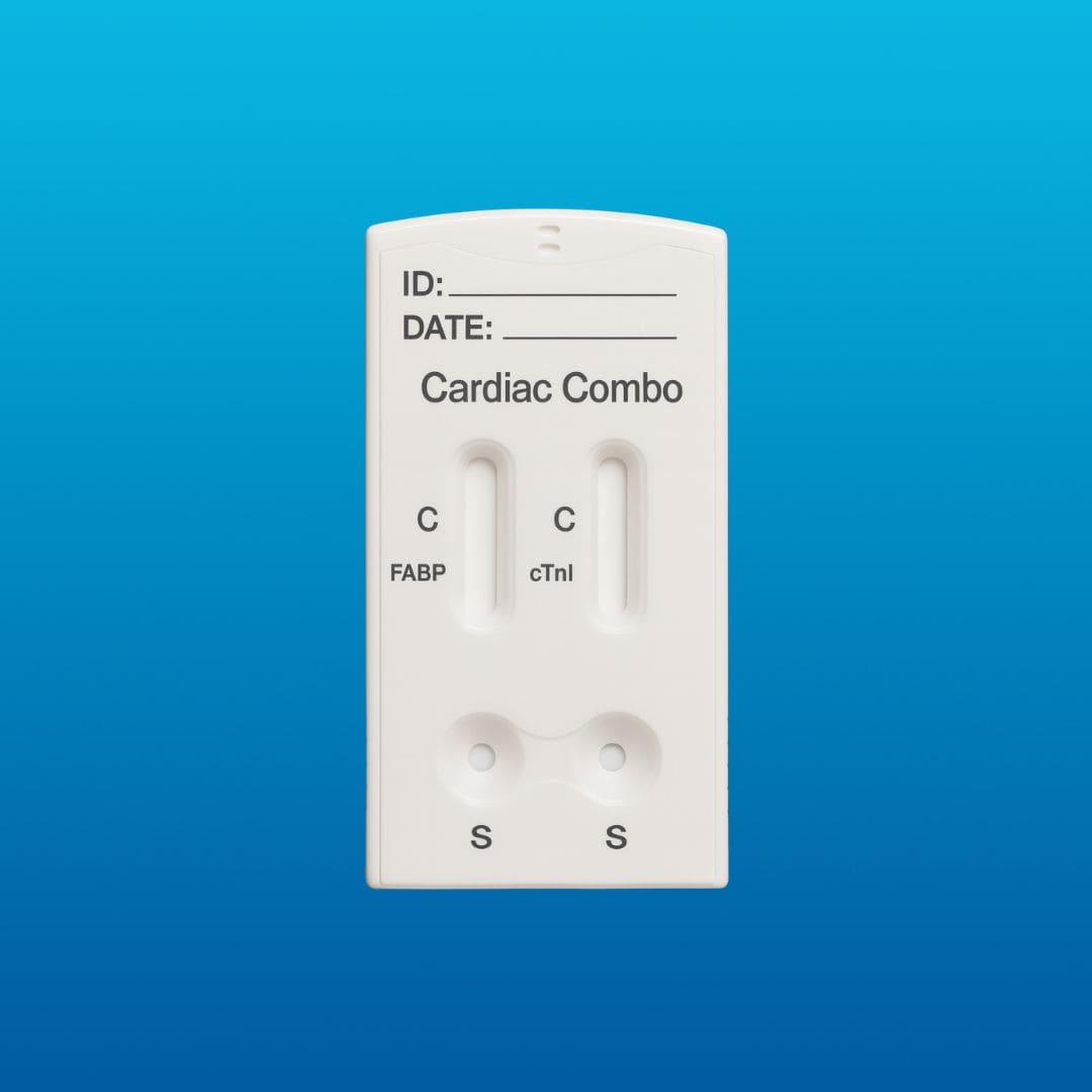 La prueba rápida Cardiac Combo Advanced detecta simultáneamente H-FABP (marcador ultra-temprano de daño cardíaco) y Troponina I (marcador altamente específico para infarto), mediante muestra de sangre total, suero o plasma. Esta prueba brinda al profesional de la salud una herramienta decisiva para la detección temprana del Infarto Agudo al Miocardio (IAM).