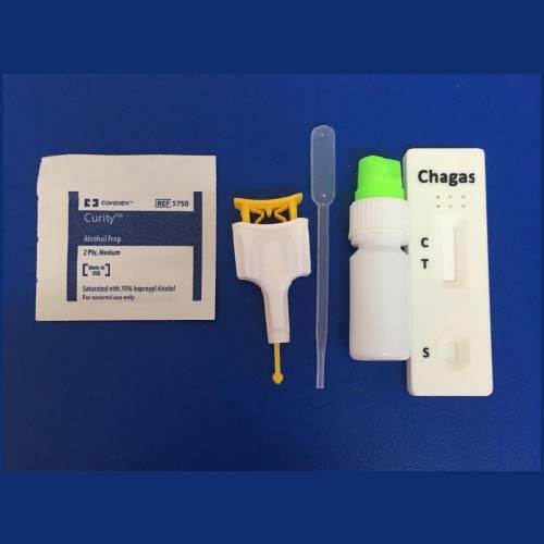 La prueba rápida de Chagas funciona en muestras de suero, plasma o sangre auxiliar en la detección cualitativa de anticuerpos IgG anti-Trypanosoma cruzi